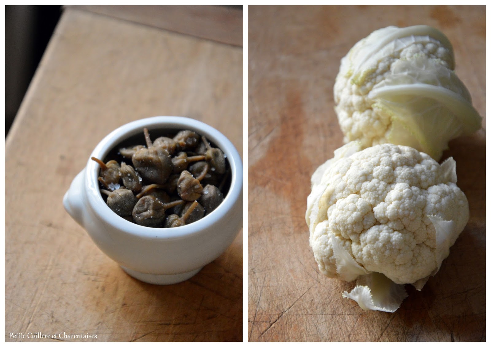 Rincer rapidement les anchois pour retirer l’excédent de sel, retirer l'arrête centrale et couper les filets et deux. Les ajouter avec les câpres au chou fleur fleur, bien mélanger et laisser reposer une petite heure avant de servir.